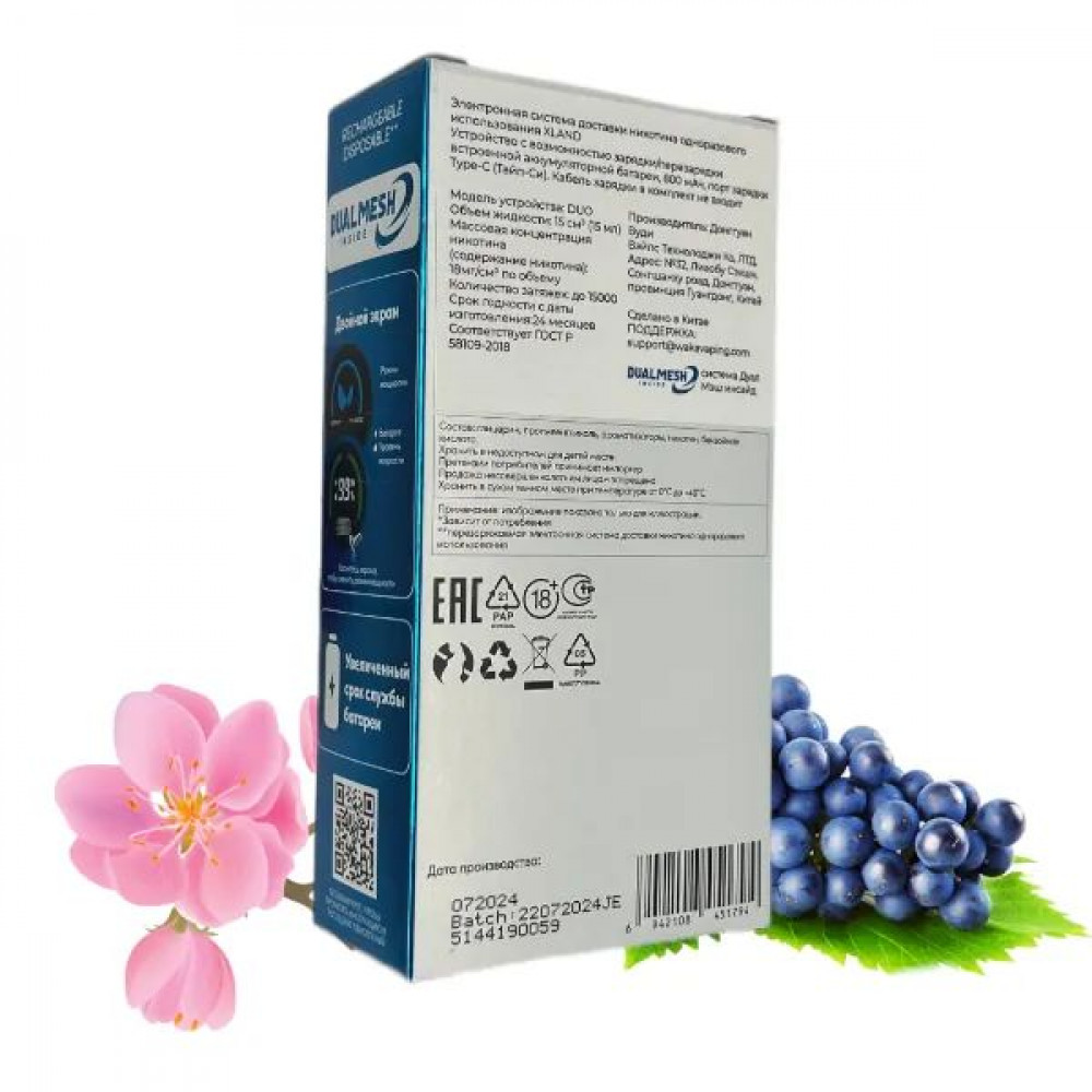 | ИспарительDual Mesh | Количество затяжек, шт15000 | ЛинейкаWAKA XLAND |